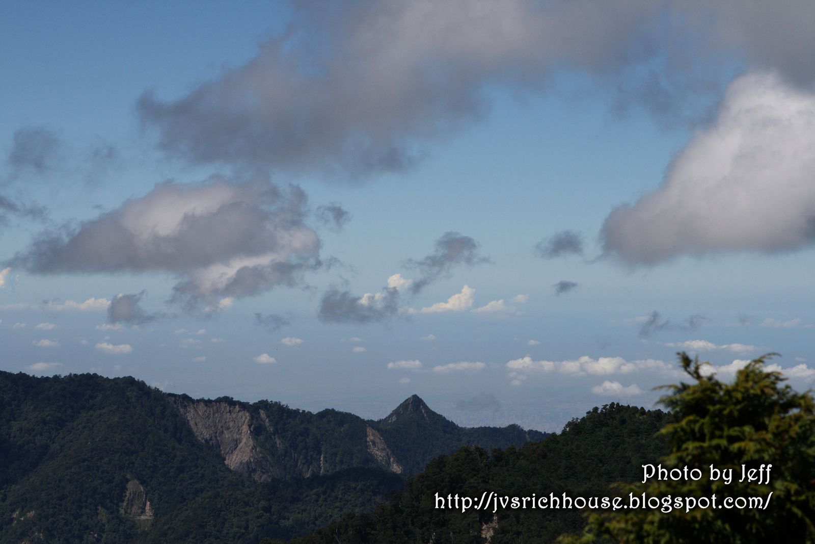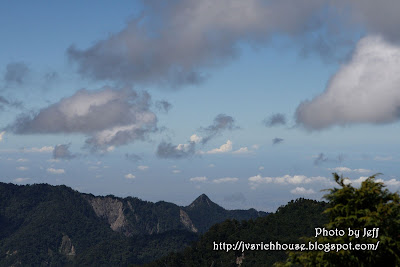 | 在觀景台上眺望遠方尖形山峰的「鳶嘴山」 |