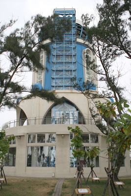 對於南寮漁港的印象都是"很熱"、"風很大",其實都是選不對時間去,今天陰天加上已是午後,這天天氣真的很適合來此放風箏,停車位超多的又不用煩惱停車問題,遊客中心是免費入場的喔! 看到有些隊友在門外閒坐,邀他們上去頂樓看海,原來他們以為這裡是要收門票的展覽館,看起來是有點像...